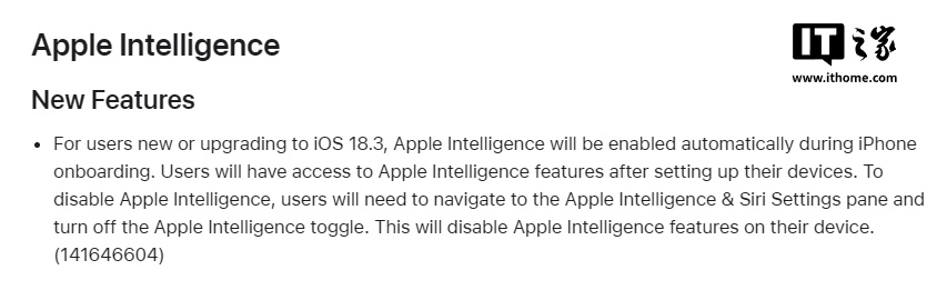 文章来源于互联网:IT之家-苹果 iOS 18.3 默认启用 Apple Intelligence 功能,用户可手动关闭