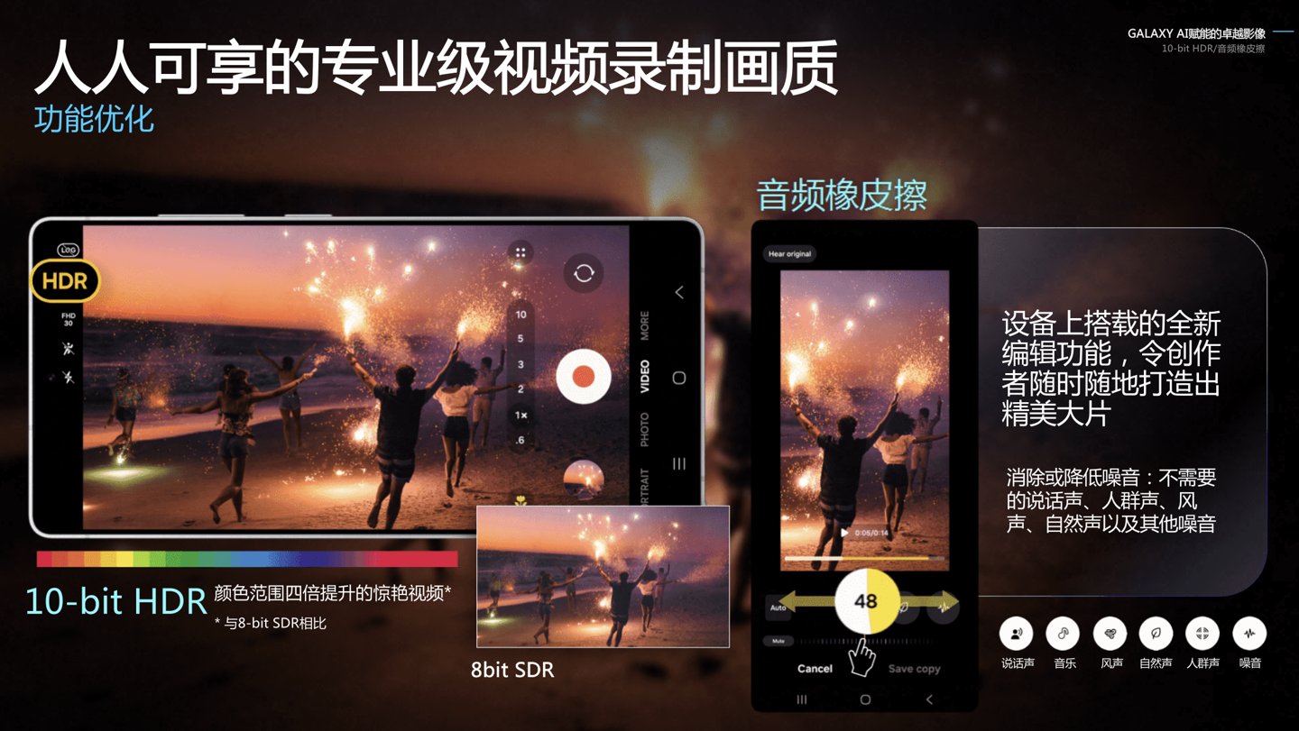 影像方面,该机配备全新 50MP 超广角镜头、支持夜拍视频及 10-Bit HDR 视频,同时在 AI 加持下实现“音频橡皮擦”、“虚拟光圈”、“生成式编辑”、“智绘人像”功能,具体规格如下: