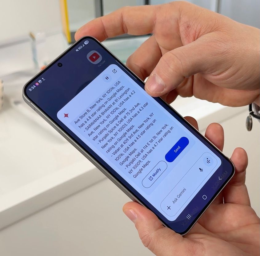 Galaxy AI 允许跨应用操作。例如,你可以让它查找下一场足球比赛的时间,并将其添加到日历中,然后发送短信通知朋友;另一个例子是,观看食谱视频时,可以让 Galaxy AI 提取食材信息并添加到笔记应用中。