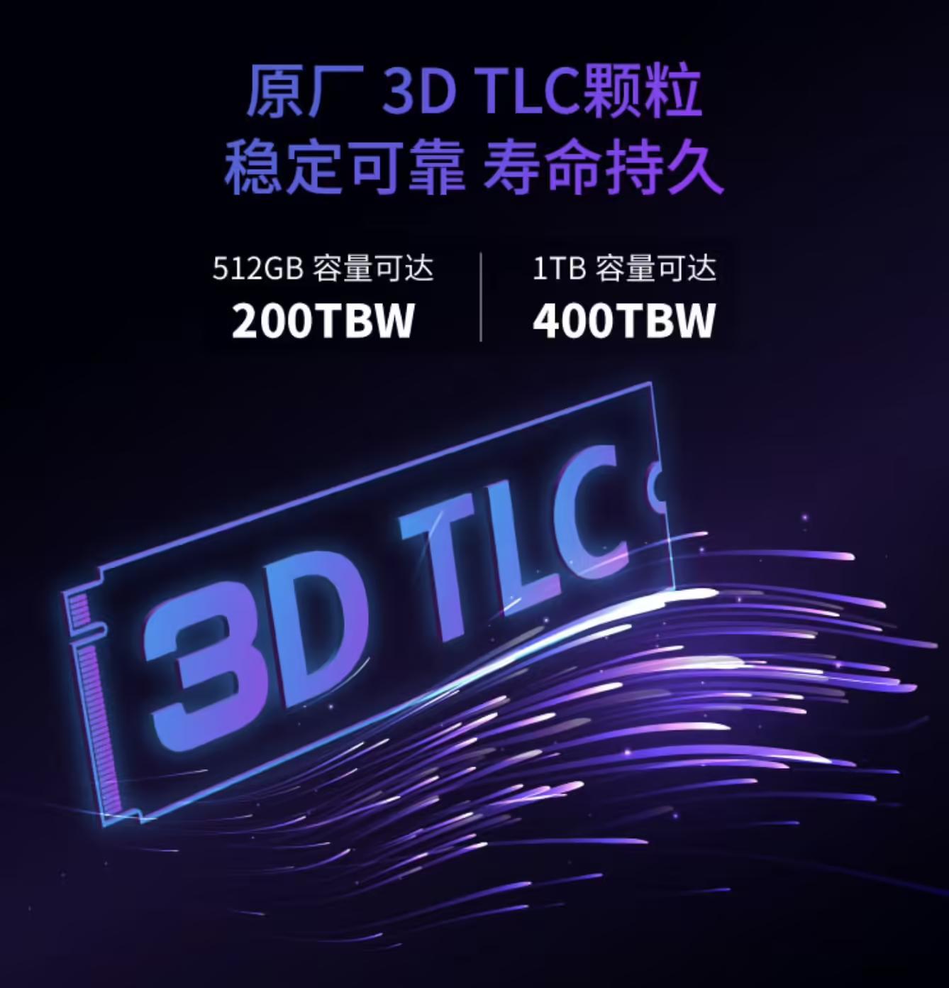 使用寿命方面,紫光闪存宣称 512GB 版本寿命为 200TBW、1TB 版本寿命为 400TBW,质保为 3 年。