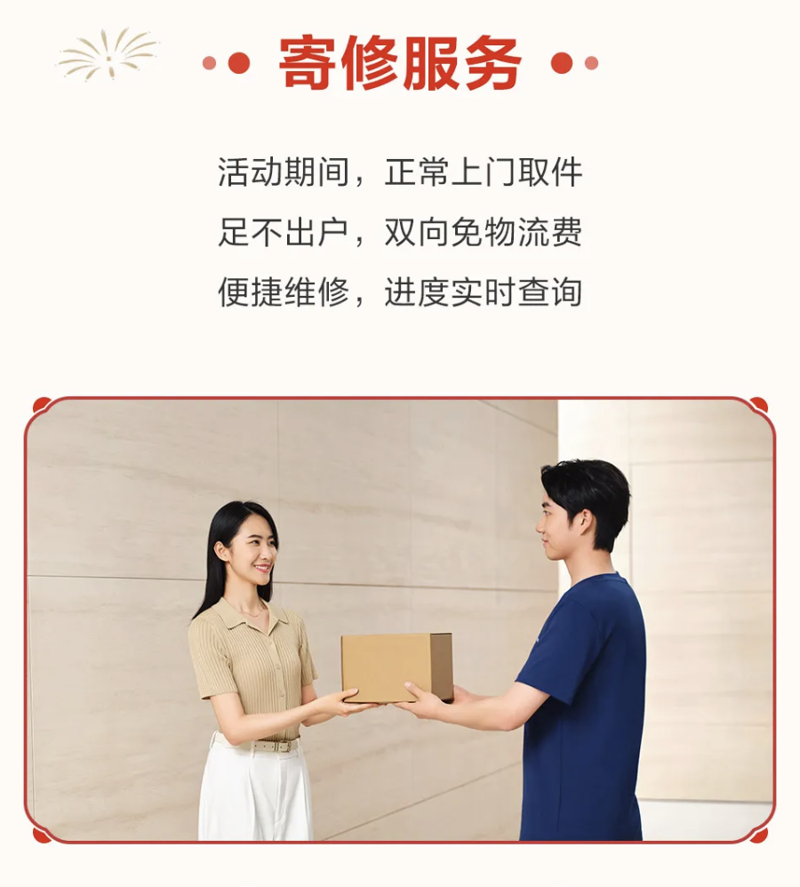 此外,华为表示旗下手机平板等设备寄修服务在春节假期期间实行正常上门取件,用户可“足不出户便捷维修”,同时可以实时查询维修进度。