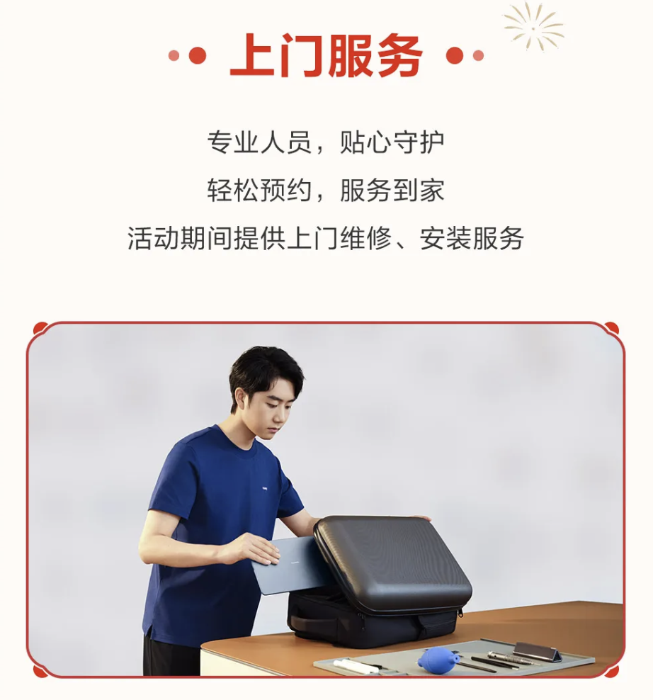 华为同时表示,春节假期用户也可以预约人员上门维修设备,实现“服务到家”。