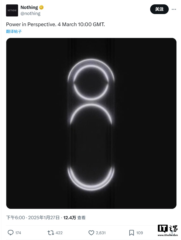 IT之家 1 月 27 日消息,Nothing 今日在 X 平台发布了一段预告,展示了其下一款智能手机可能拥有的相机模块或“符号界面”,推文中还透露了可能的活动标语和日期 —— 格林尼治时间 3 月 4 日上午 10 时(IT之家注:北京时间 3 月 4 日 18 时)。