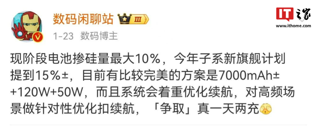 而近期有新爆料显示,今年会有子系新旗舰计划将掺硅量提到 15%。