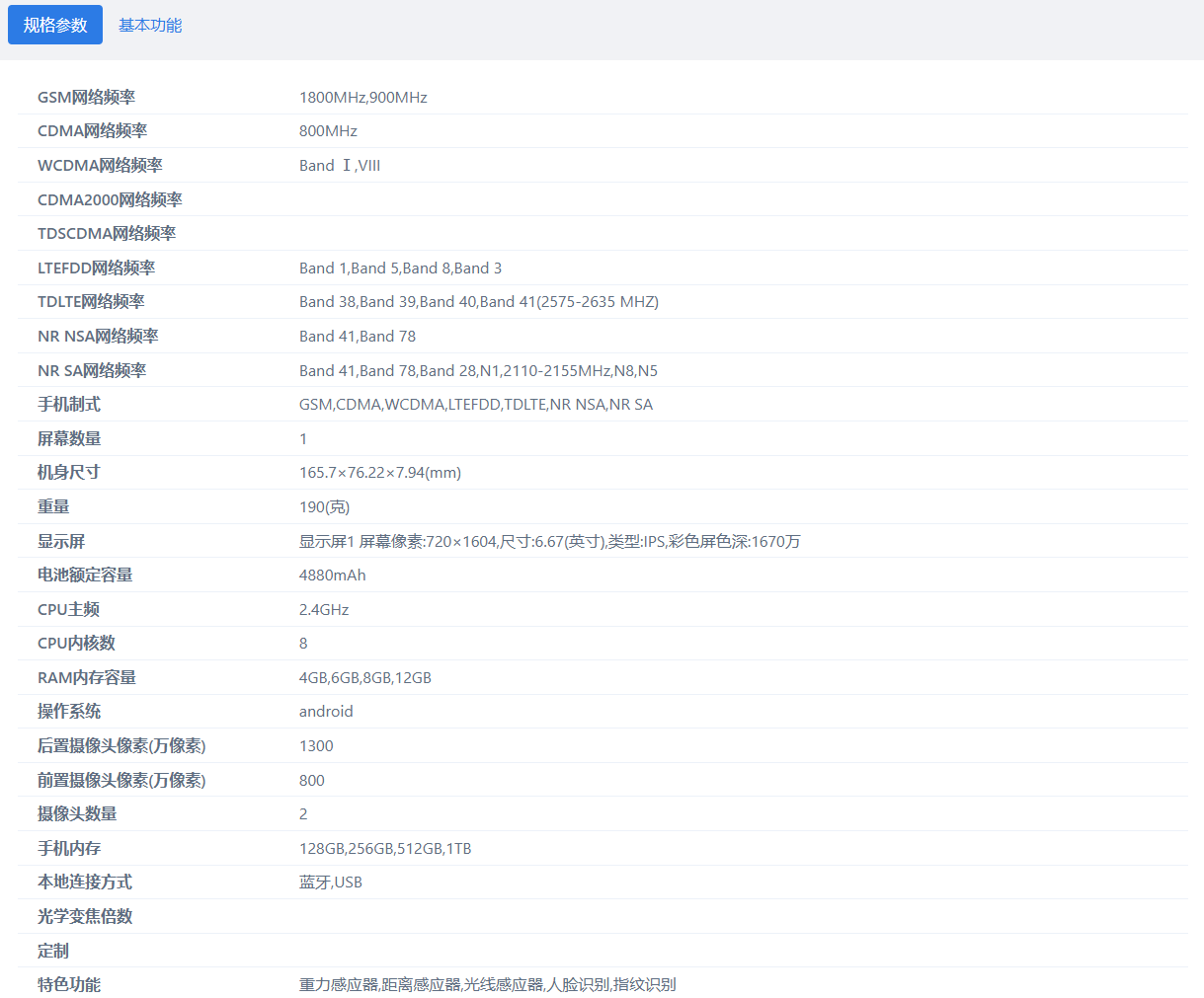 新机提供 4GB、6GB、8GB、12GB 内存容量以及 128GB、256GB、512GB、1TB 存储空间可选,预装安卓系统(具体版本未公布),后置 1300 万像素镜头、前置 800 万像素镜头。