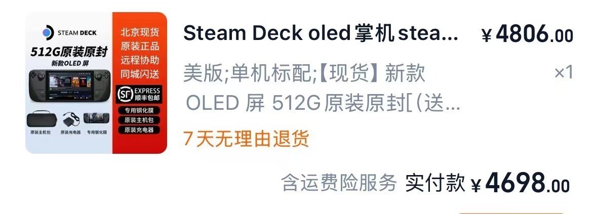 最后,聊聊两台设备的用机成本。首先看机身价格,Steam Deck OLED目前还在溢价,电商平台平均要4500元左右,Switch OLED则是1800元左右。价格差距巨大,一台Steam Deck OLED可以换2台Switch OLED还有余,而且4500元PC玩家是可以换一块好显卡的,这要看你怎么去选择了。