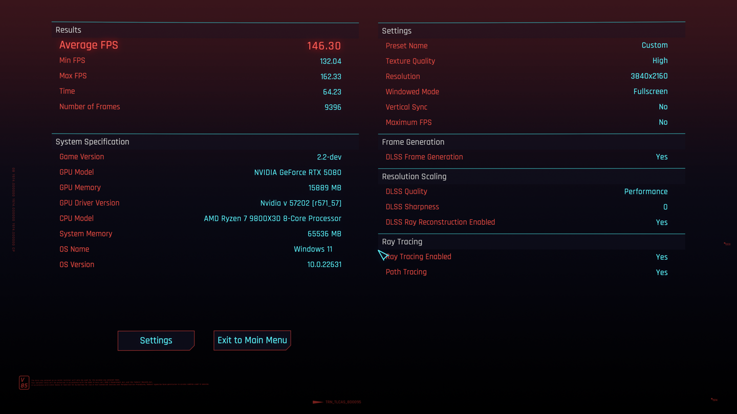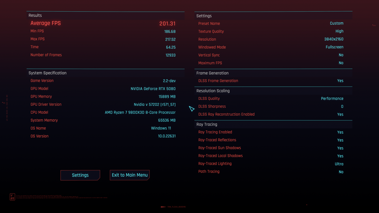 作为一款优化非常出色的游戏,RTX 5080 在 4K 分辨率下不开光追和 DLSS 选项,都能得到超过 130 帧的平均帧数,无双割草的体验感拉满。