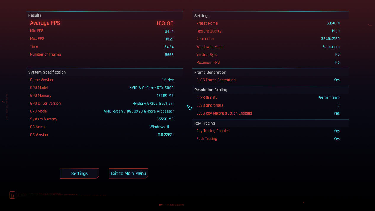 在 2K 分辨率 + 影视级画质 + 50% 超采样分辨率 + 高全景光追 + 帧生成下,游戏平均帧数为 128 帧;