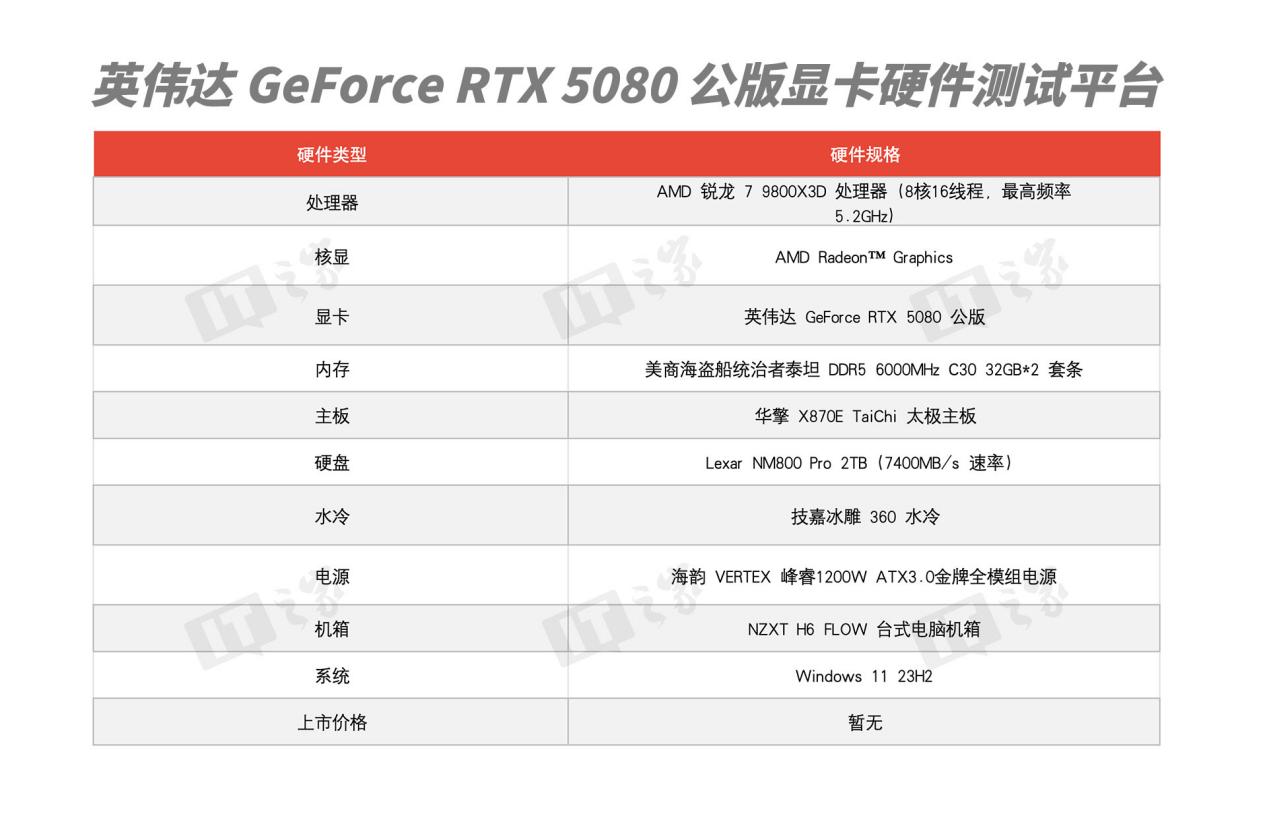 为了释放 NVIDIAGeForce RTX 5080 FE 的全部性能,本次测试平台具体配置如下: