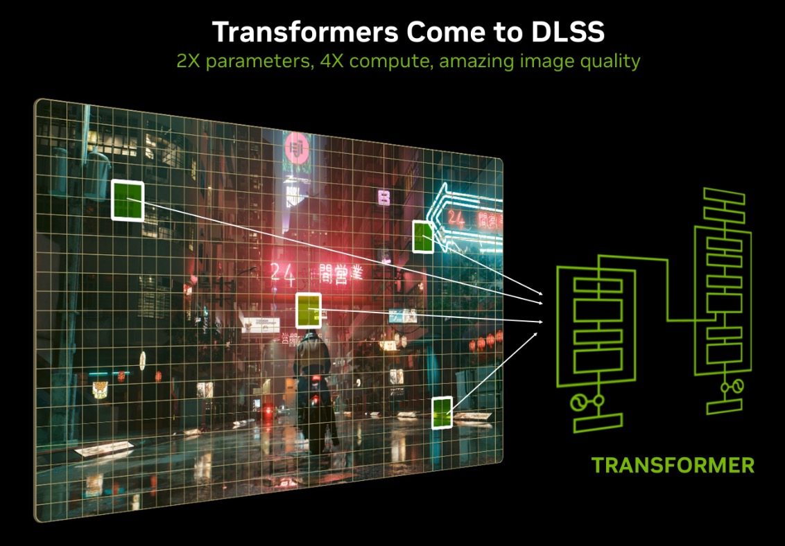 DLSS 4 技术实现了模型架构的重大革新。DLSS 光线重建、DLSS 超分辨率以及 DLAA 这些特性,均由首个实时 Transformer 模型驱动,该模型旨在提升生成像素的质量。它能够借助自注意力操作,对一帧或多帧画面中的每个像素的重要程度进行评估,从而更好地理解场景中的各种关系。通过这种方式,生成的像素稳定性更佳,伪影更少,同时在运动细节的呈现上更为丰富,边缘也更加平滑。