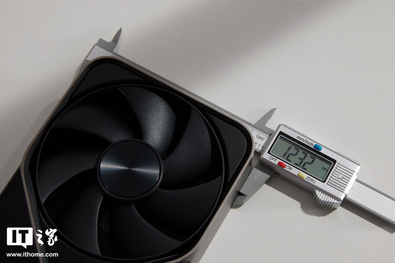 公版的 RTX 5080 看似延续上一代 RTX 40 系显卡的风格,但由内到外都是全新的设计。其散热系统采用“Double Flow Through (双流式)”的散热技术,与常规显卡主板靠近 I/O 接口侧不同,RTX 50 系列的主板为居中设计,主板两侧的散热鳍片的前后均没有遮挡,两颗大尺寸风扇(IT之家实测直径约为 116mm)可直接吹拂鳍片,使得气流穿越度最大化。与以往公版显卡散热方案相比热管理有显著提升。