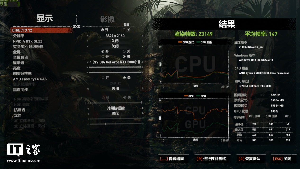 在 4K 分辨率 + 最高画质下,游戏平均帧数为 147 帧;