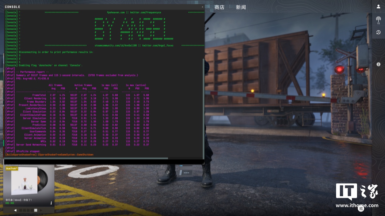 而在 2K 分辨率 + 高画质下则跑到了平均 482 帧的游戏帧数,1% Low 帧提升到 235.8 帧,完全不会影响游戏发挥。