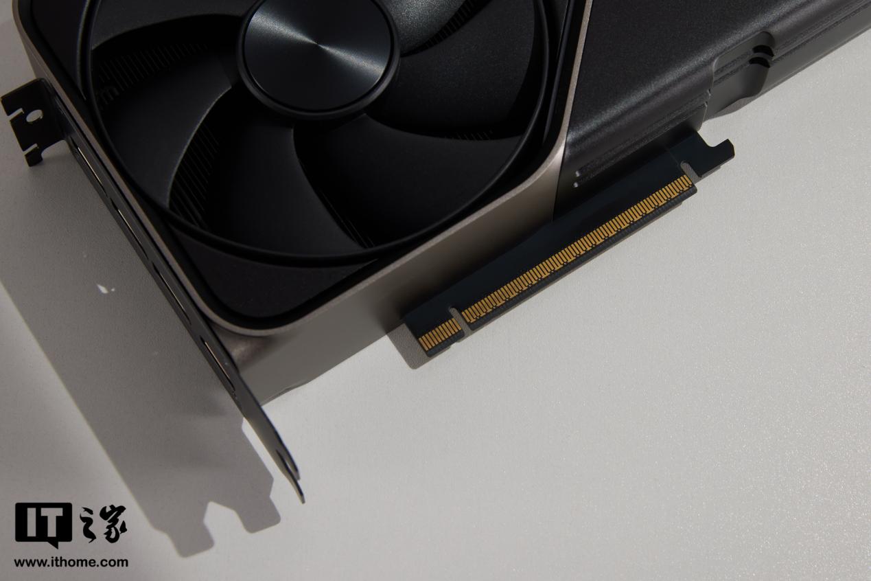 显卡底部可以看到新版 PCIe5.0 规格的金手指。