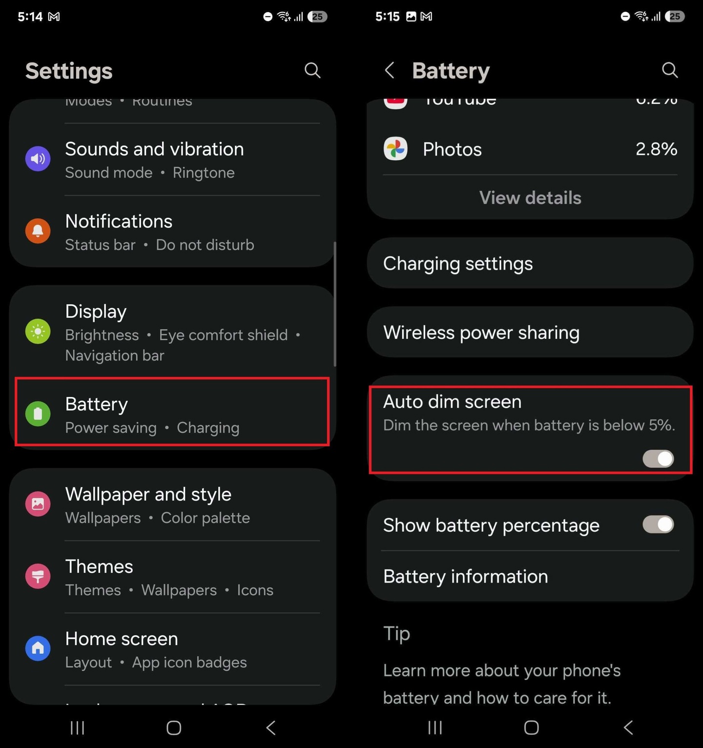 基于安卓 15 的 One UI 7 引入了名为“自动降低屏幕亮度(Auto dim screen)”新选项,用户可以根据需求定制低电量时,是否调暗屏幕亮度。