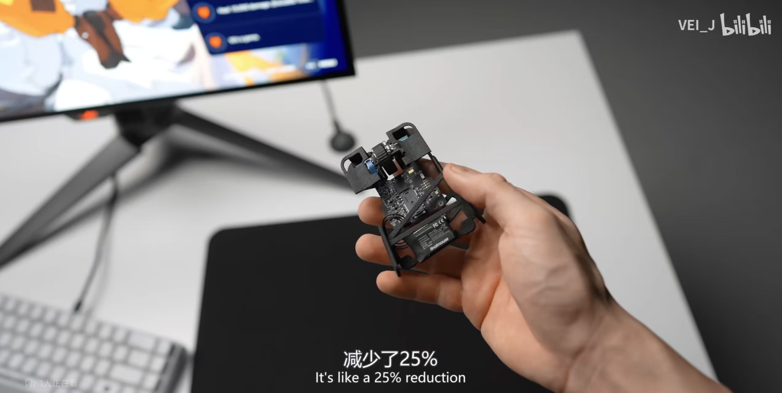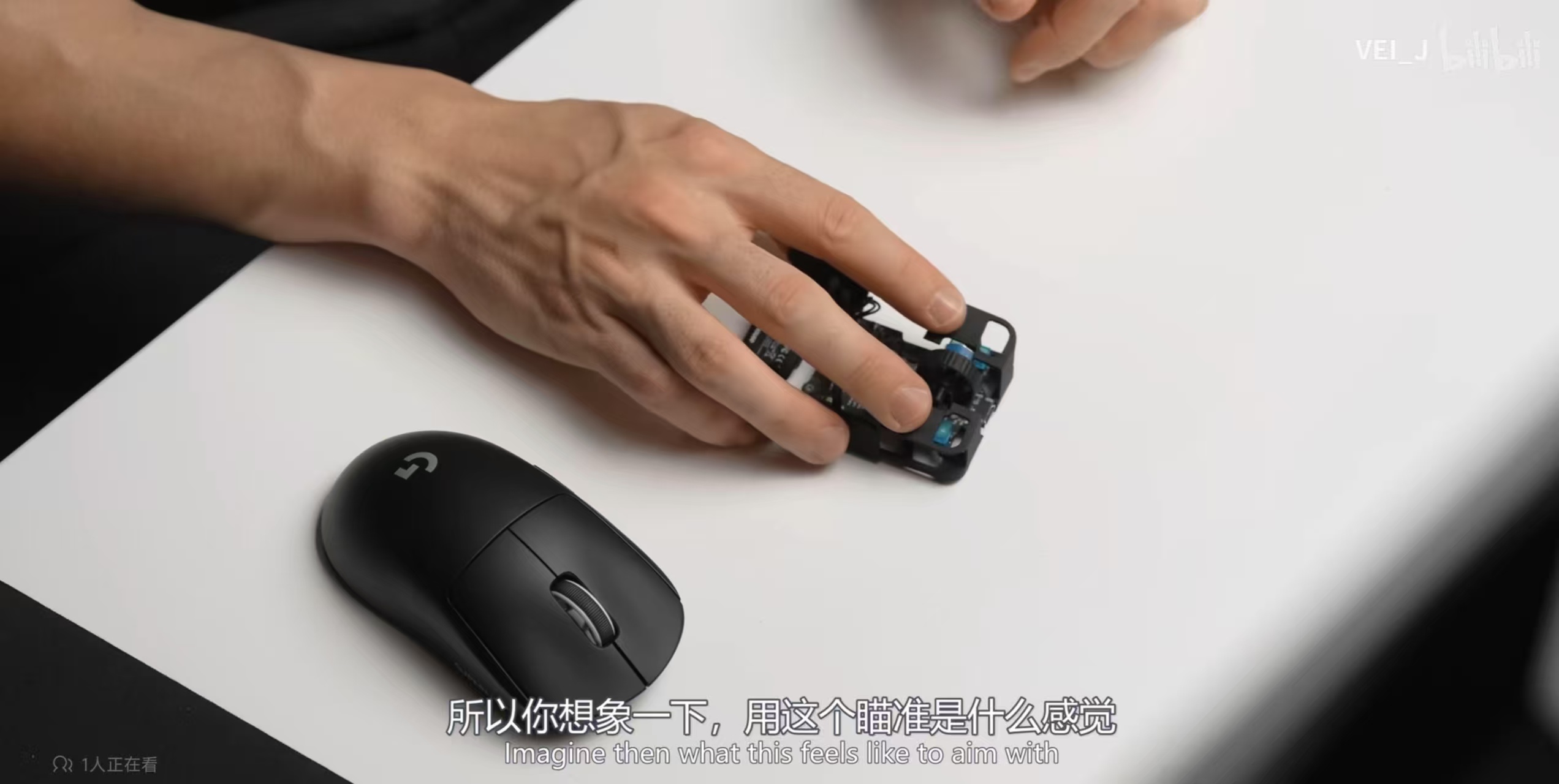就像Optimum在视频里演示的那样,你的四根手指要非常精准地夹住鼠标上仅剩的两块板子和左右键,像是用手指捏着鼠标那样用。