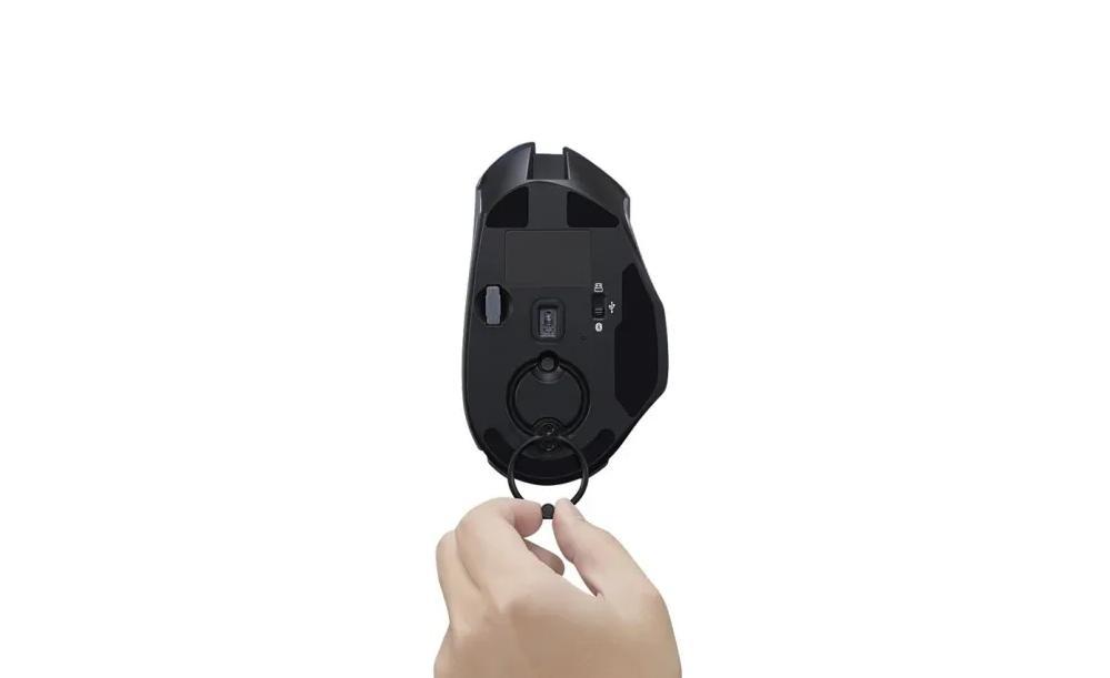 只要拉动鼠标底下的这个拉环,将它拽出来,然后原地疯狂旋转个1分钟,你就能给鼠标“充”进30分钟的续航