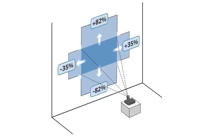 ZUH6000 的双轴镜头设计非常独特,镜头可以围绕安装轴旋转 90 度,围绕镜头轴旋转 360 度。镜头还可以隐藏起来,只露出弹出式机构,让人联想到乌龟伸缩脖子的动作。此外,其还支持镜头位移功能,可实现高达 82% 的垂直和 35% 的水平调整。这种灵活性使得投影仪能够在多个方向上进行投影,并且无需移动投影仪或改变镜头方向就能微调投影图像的位置。1.1 倍的光学变焦机制确保了高效、精确的图像定位,使其非常适合复杂的空间设计。