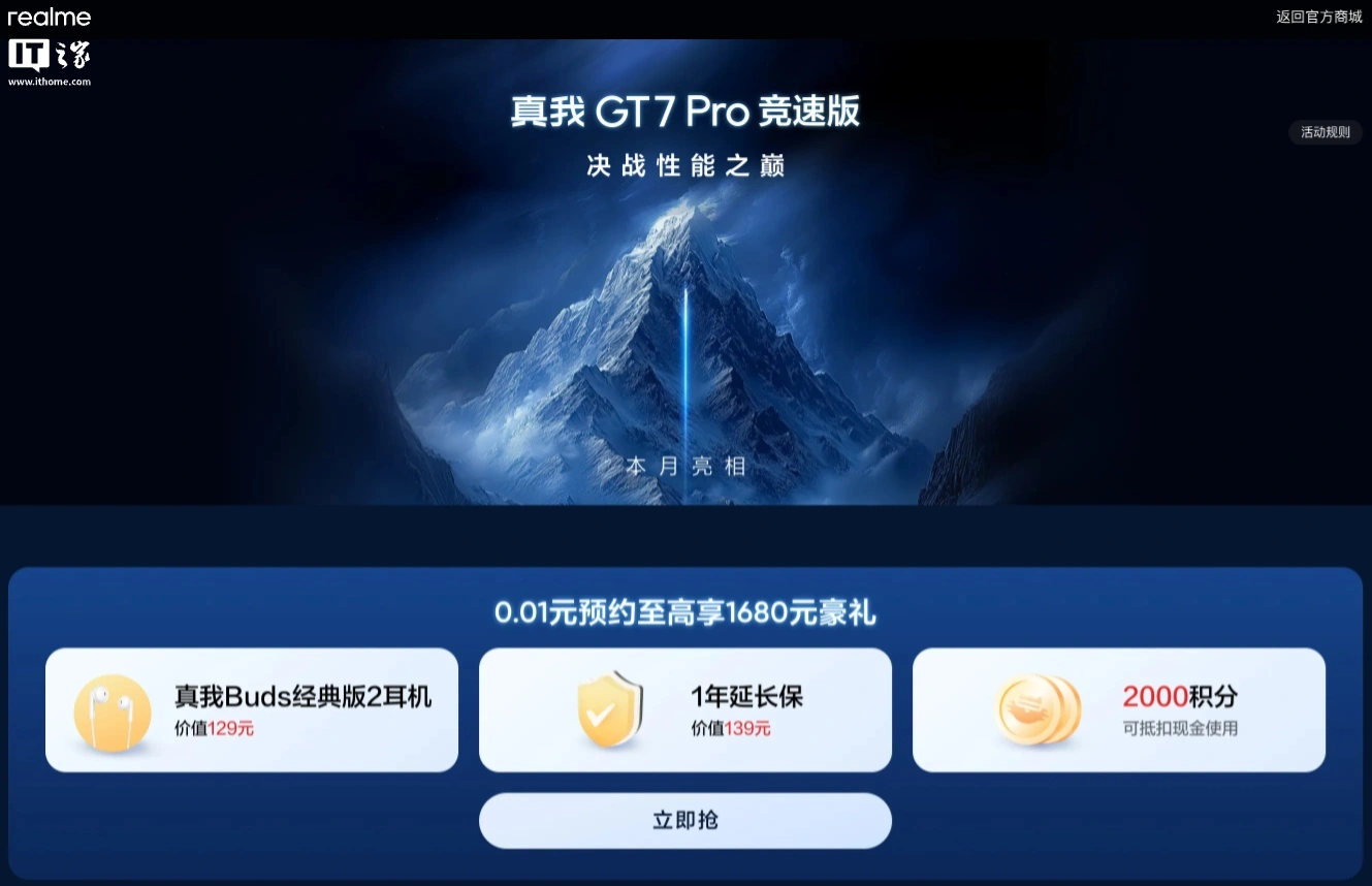 目前,realme 真我 GT7 Pro 竞速版手机已在官网开启预约。