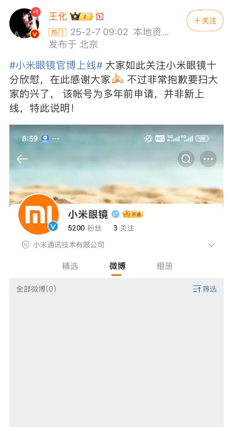 文章来源于互联网:凤凰网-“小米眼镜”官微上线引发关注,王化:多年前注册