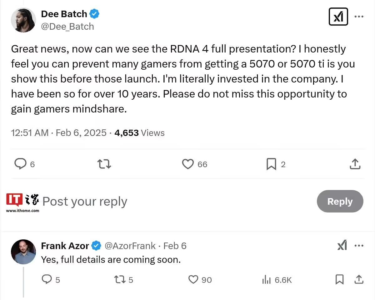 2 月 7 日消息,AMD 游戏解决方案和游戏营销首席架构师 Frank Azor 昨日在 X 平台表示,RDNA 4 显卡架构的完整细节即将公布。