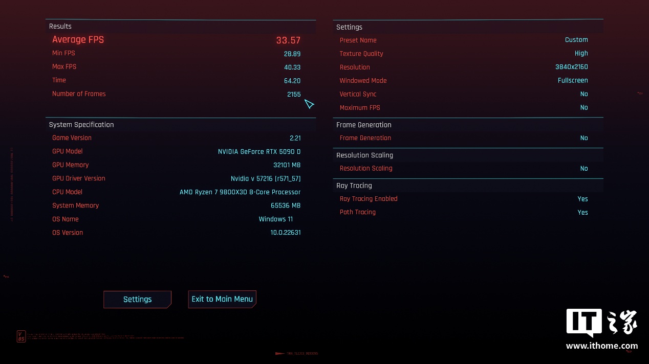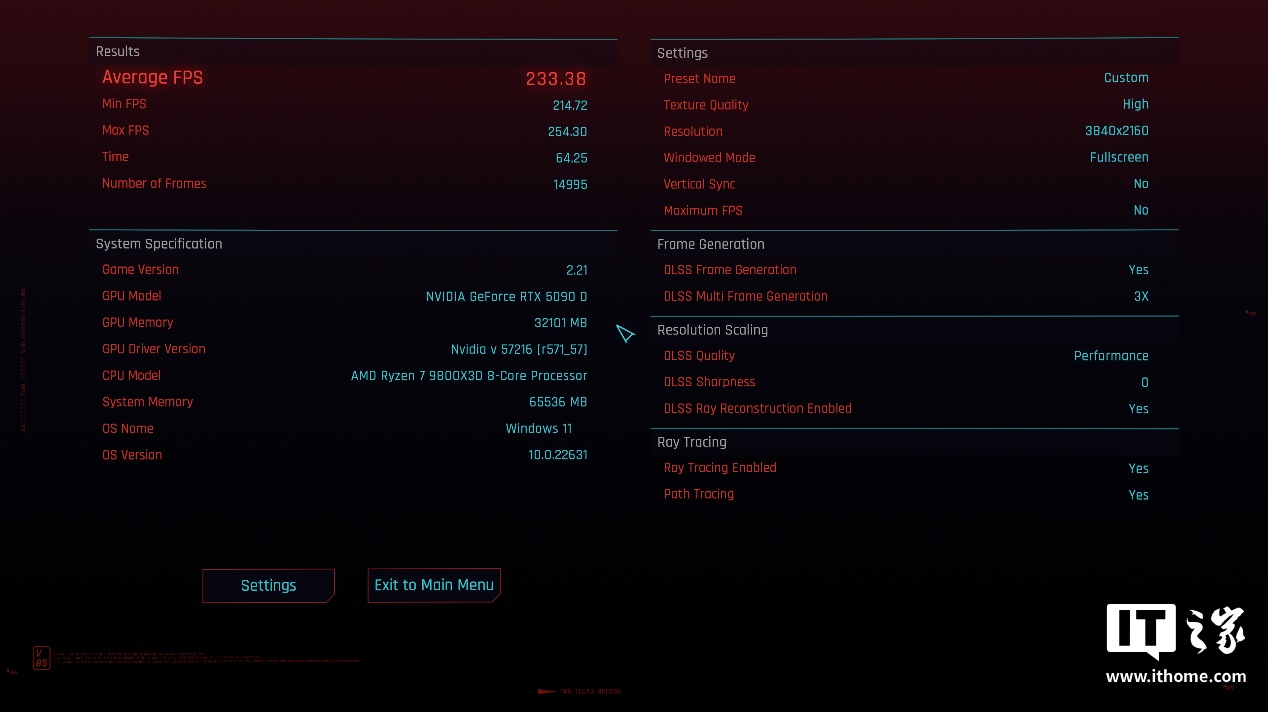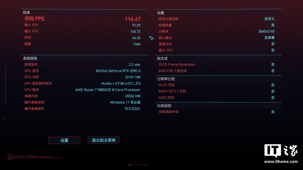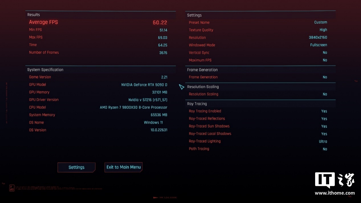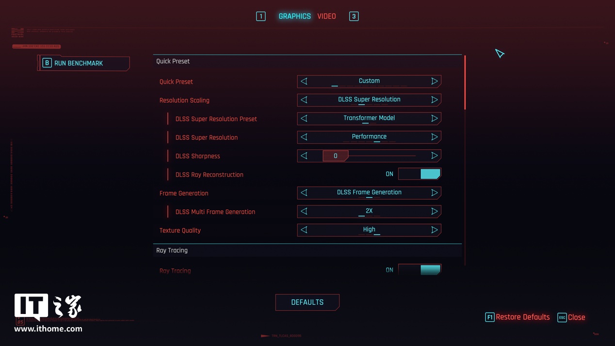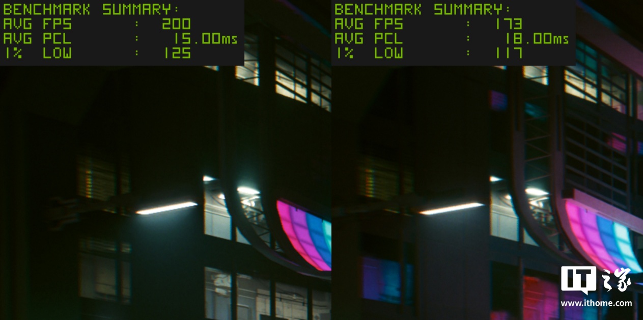 IT之家选取了目前 2 款画质和 DLSS 4 支持最好的游戏《赛博朋克:2077》和《心灵杀手 2》进行实测。咱们先看《赛博朋克:2077》的表现。