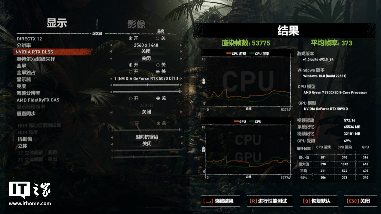 在 2K 分辨率 + 极致画质下,游戏平均帧数为 373 帧;