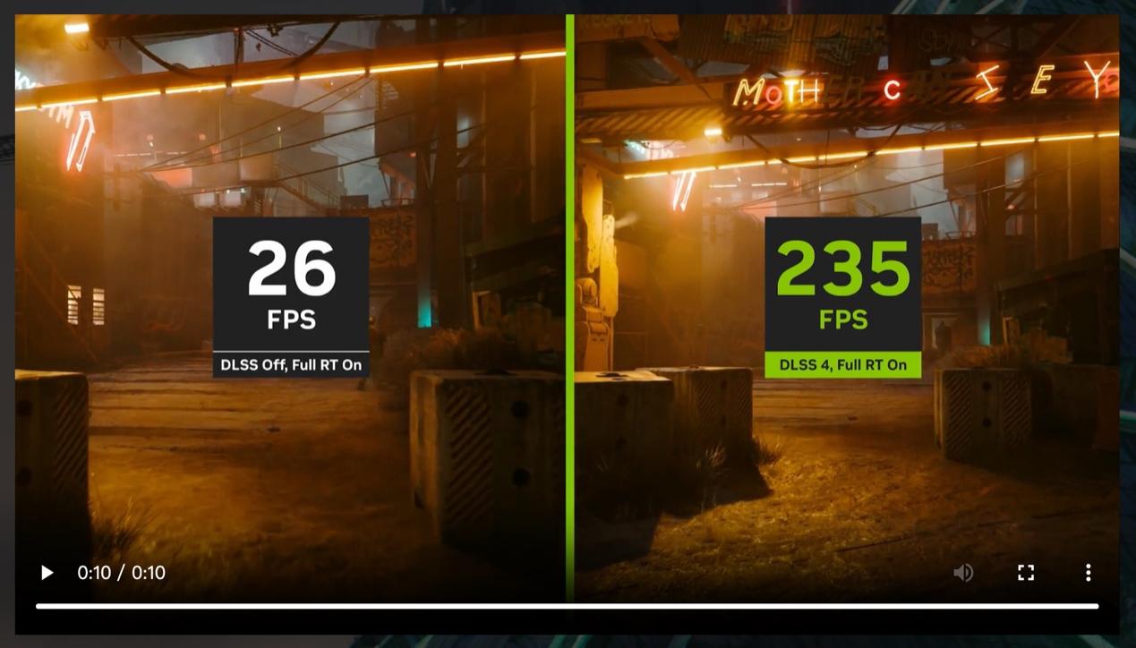 单从性能表现上看,DLSS 4 技术可以说开辟了一条游戏性能发展的新赛道,它不再执着于传统光栅性能的提升,而是借助 AI 和补帧技术,为光追游戏提供跨越式的性能提升,而且越吃性能的游戏收益越大。