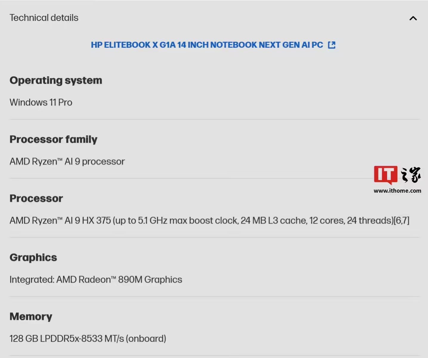 IT之家 2 月 8 日消息,惠普 EliteBook X G1a 商务本是首款标注 LPDDR5x-8000 内存支持的 AMD “Strix Point” 平台产品。而 X 平台消息人士 @AnhPhuH 北京时间 6 日注意到,这款笔记本还悄然更新了 128GB LPDDR5x-8533 内存选项。