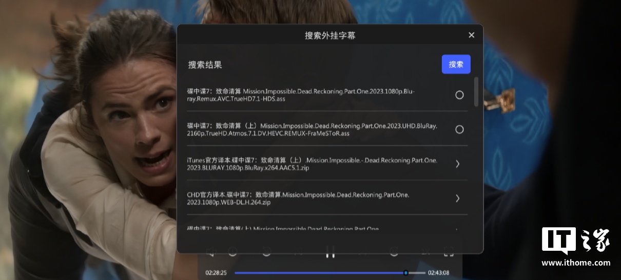 它的字幕支持也是难逢对手,其除了支持常见的 SRT、ASS、SUP 等字幕格式外,还内置字幕搜索下载器,一些热门资源的搜索识别成功率非常高,堪称优秀。