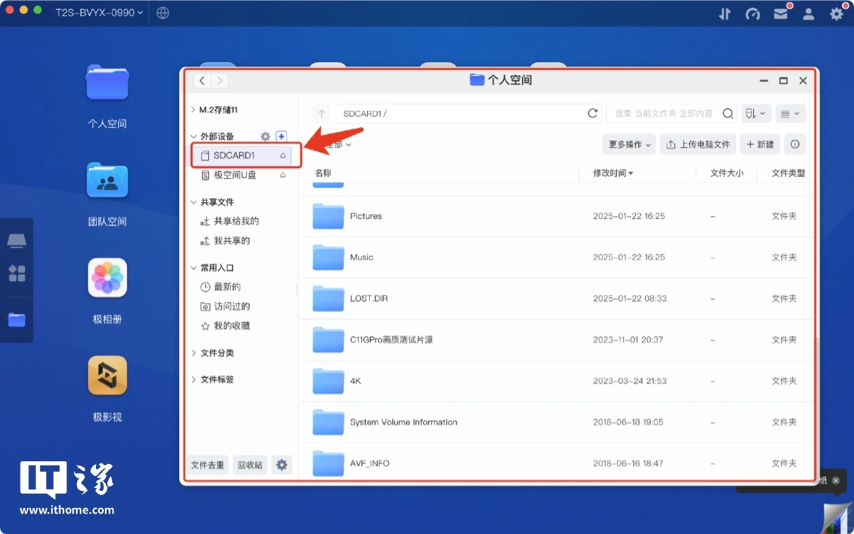 文章来源于互联网:IT之家-【IT之家评测室】NAS + 蓝光机 + 扩展坞等多属性合一:极空间私有云 T2S 体验