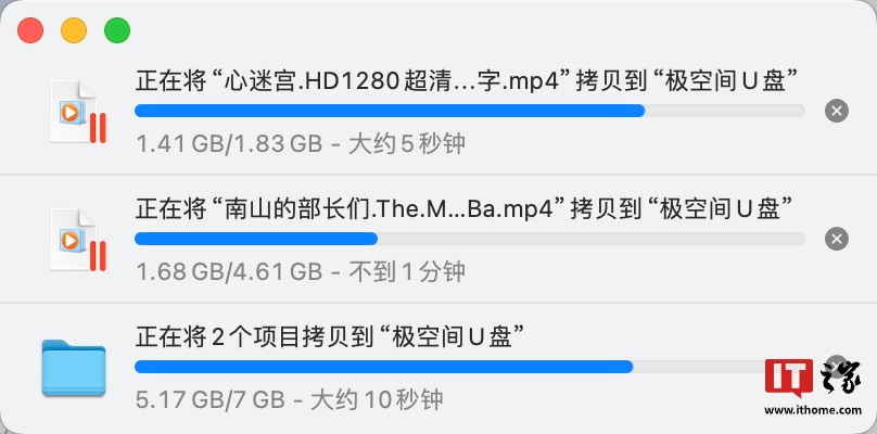 在 Mac 系统下,传输一部 2GB 左右大小的电源,大概需要十几秒时间完成,整体表现还是令人满意的, 速度非常高效。