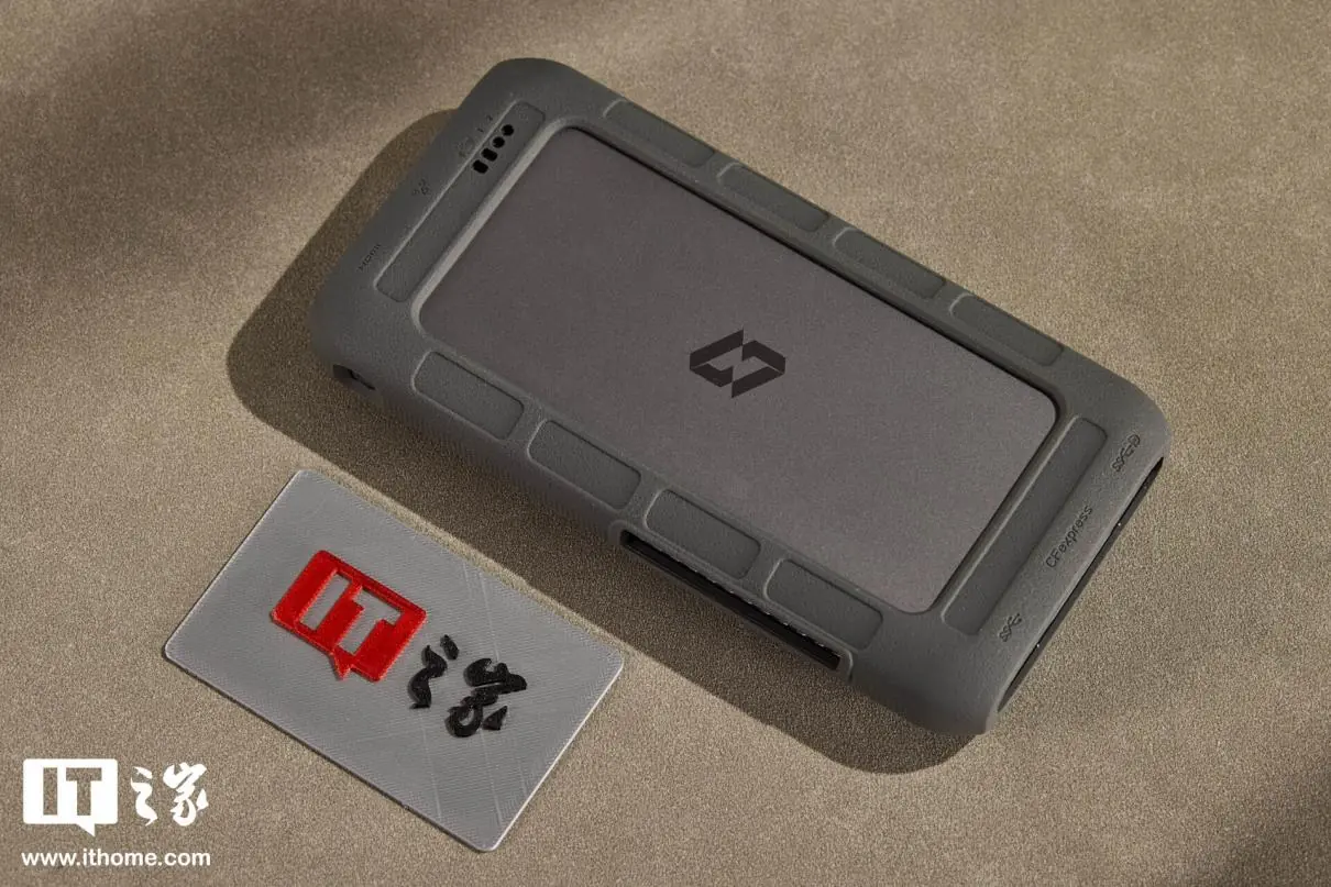 外观大小酷似硬盘盒,再搭配上那熟悉的硅胶保护套,你大概率会把它当作是一款三防硬盘。即便注意到它配备的 2.5G 网口以及丰富的扩展卡槽时,也会心生疑惑:这难道是带有扩展坞功能的硬盘盒?