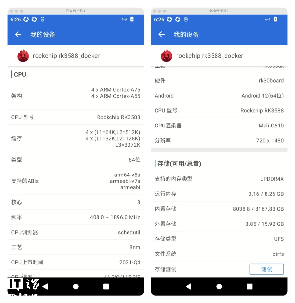 下载安兔兔,可以看到云手机的具体配置,事实上也是极空间私有云 T2S 的配置。