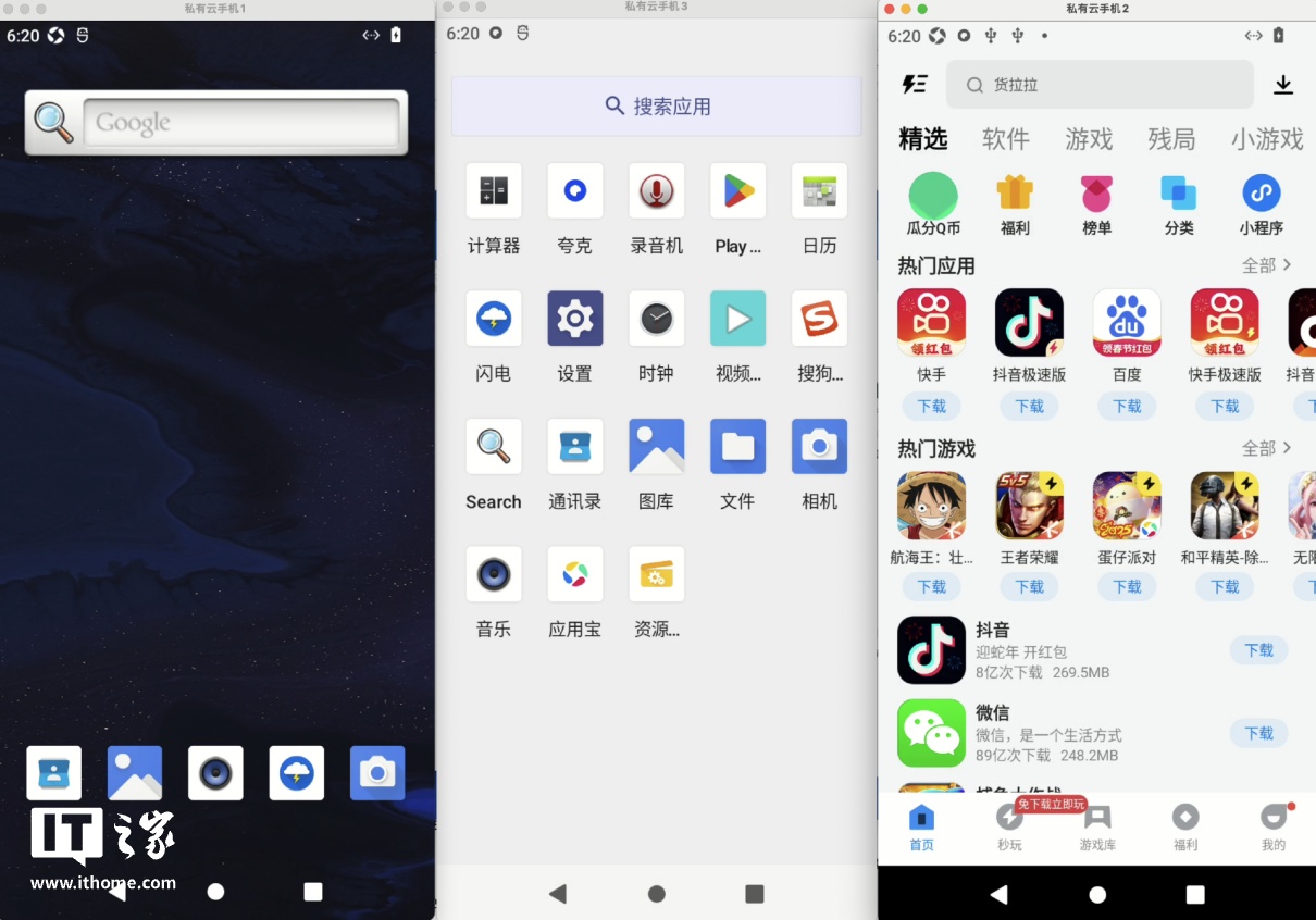 这里的云手机搭载了 Android 12 原生系统,毛坯房,梦回玩机时代。但系统内置了应用市场和浏览器,玩游戏、听音乐、刷抖音、微信聊天也都不在话下。