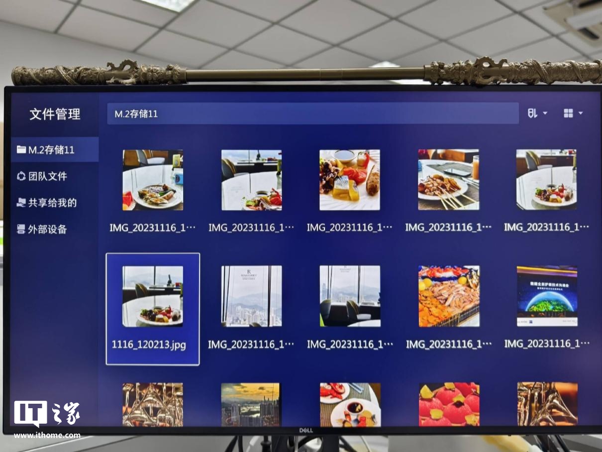 更进一步,极空间私有云 T2S 还可以作为扩展坞使用,底部的扩展槽如果接入了其他设备,比如 U 盘、SD,那么在大屏上,你就可以打开这些内容了。