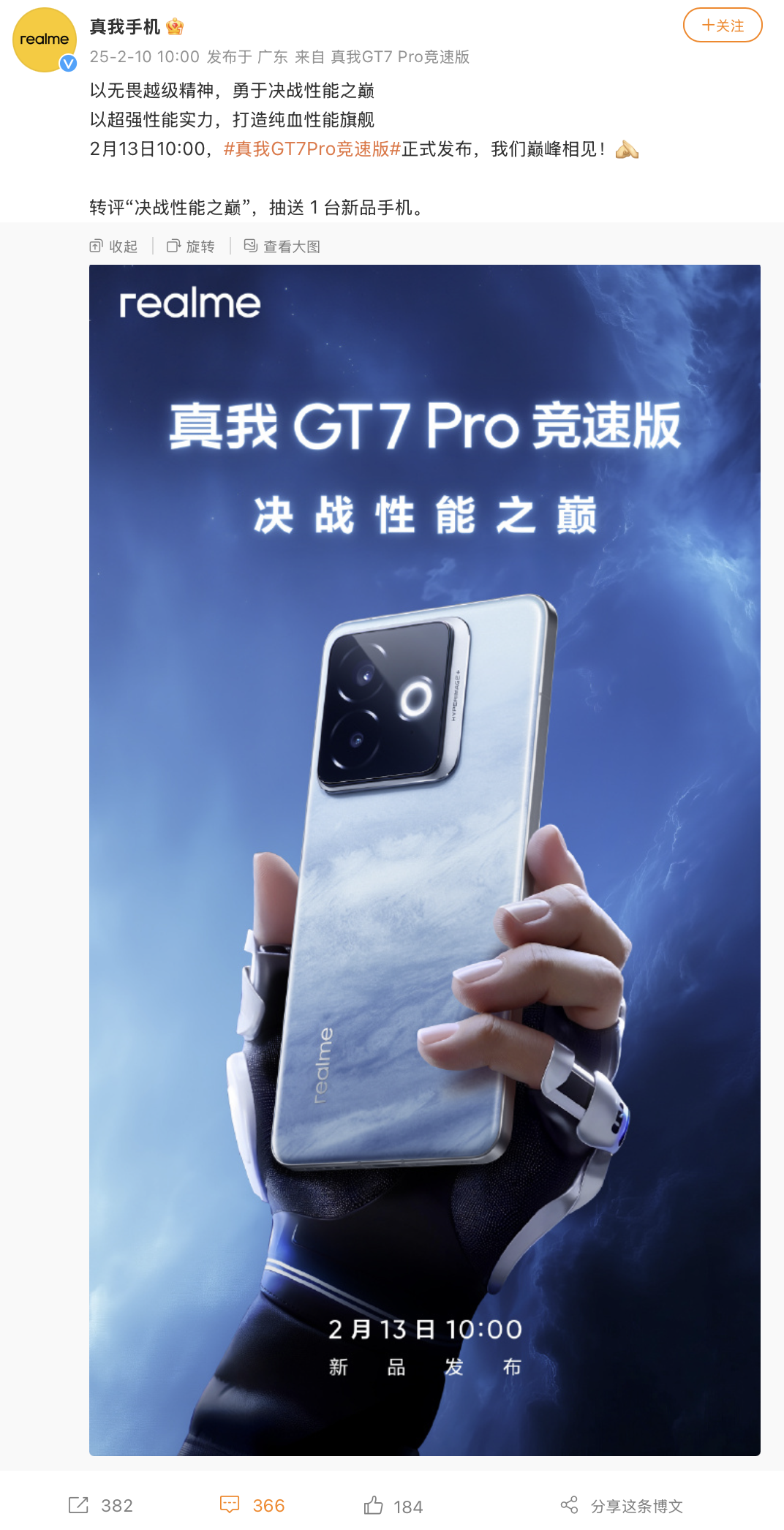 文章来源于互联网:IT之家-realme 真我 GT7 Pro 竞速版手机定档 2 月 13 日发布:搭骁龙 8 至尊版、“海王星探索版”全新配色