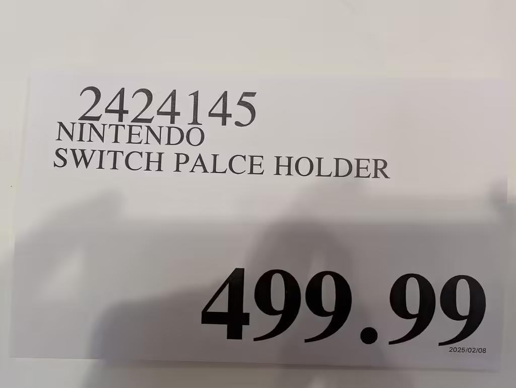 标签上显示的是“Nintendo Switch Place Holder”(占位符,价格标签上拼写有误,为“Palce Holder”),标签显示价格为 499.99 加元(IT之家备注:当前约 2550 元人民币)。