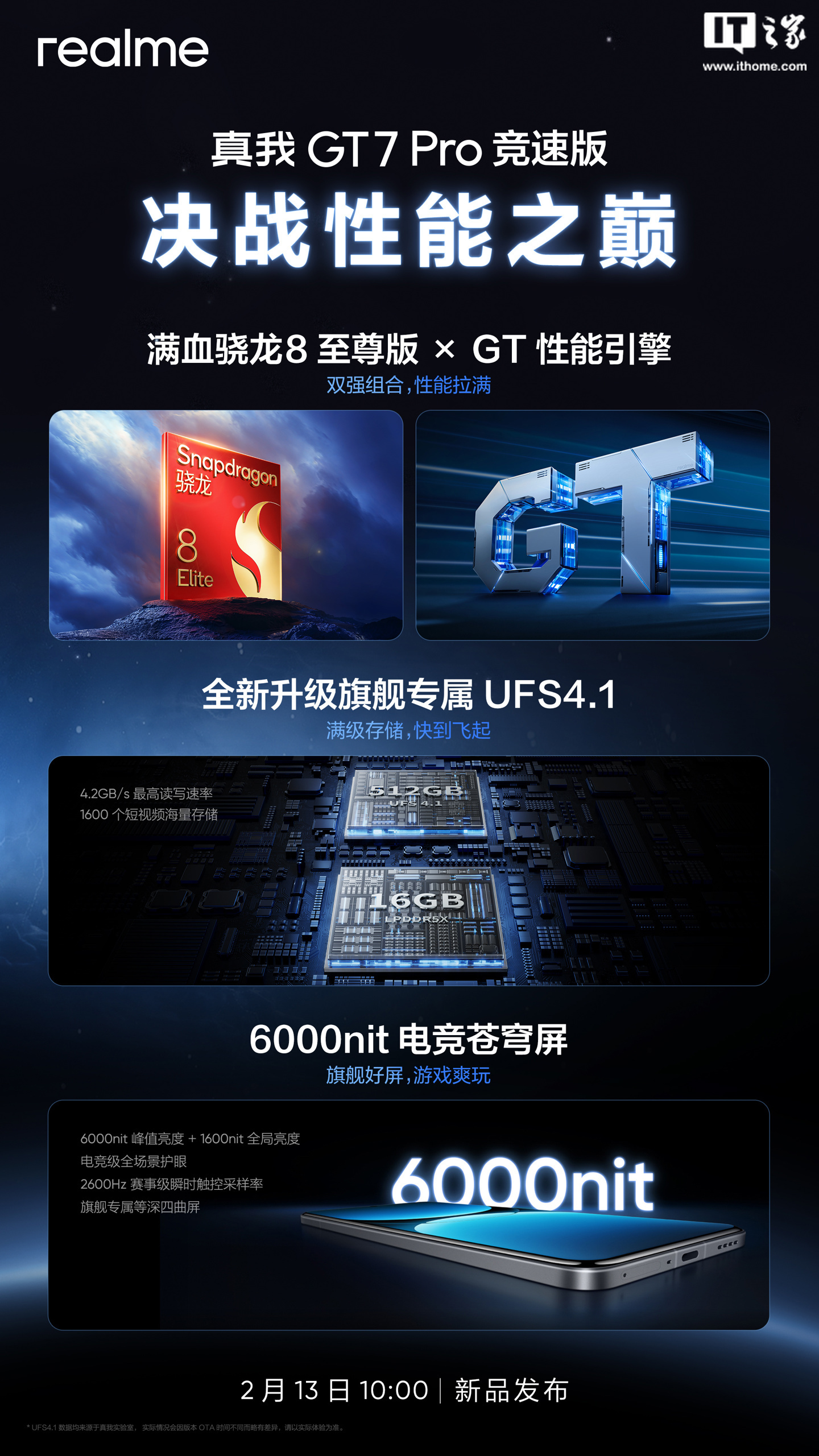 文章来源于互联网:IT之家-realme 真我 GT7 Pro 竞速版手机配备 6000nit 电竞苍穹屏、升级 UFS 4.1 闪存