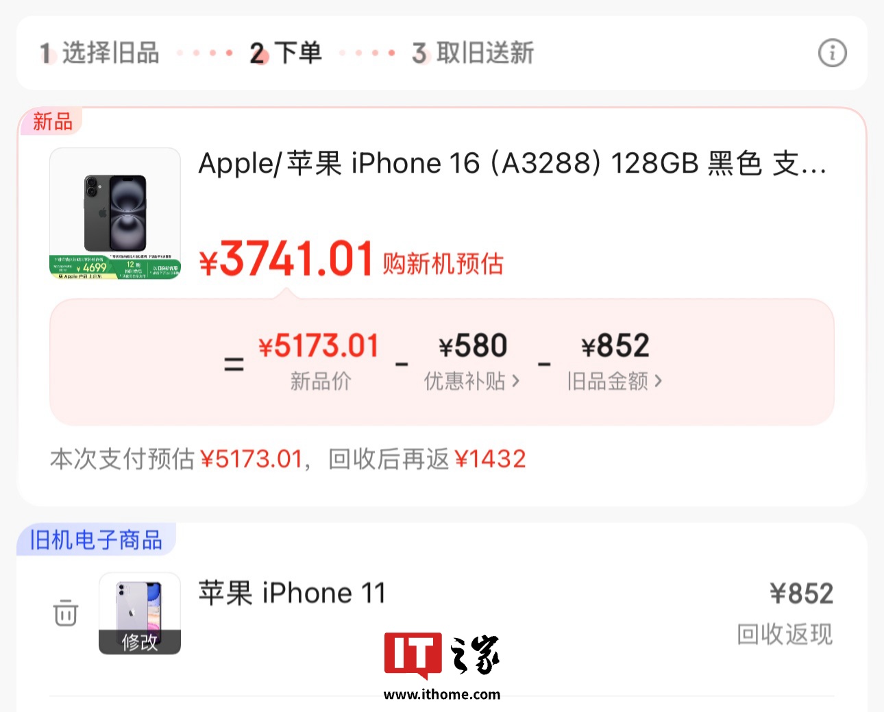 文章来源于互联网:IT之家-国补 500 元 + 以旧换新补贴 580 元:苹果 iPhone 16 4093 元 12 期免息