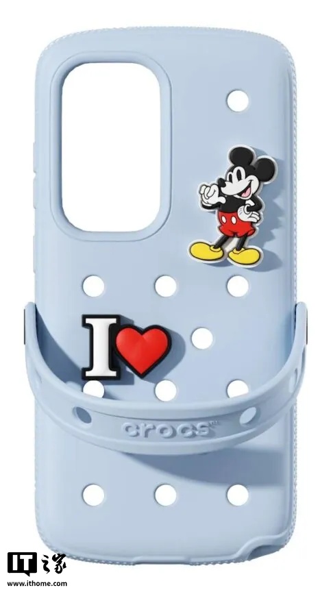 更值得一提的是,这款手机壳完全符合 Crocs 的标准规格,这意味着用户可以将自己现有的 Jibbitz 饰品(一种可更换的装饰扣)直接安装在手机壳上。此外,三星还为购买这款手机壳的用户赠送了米老鼠和“I❤️”两款标志性装饰扣。