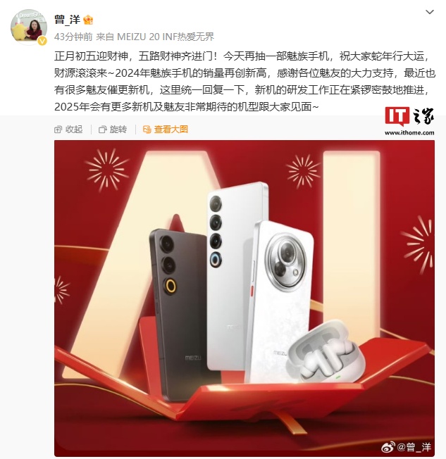 据此前报道,@曾_洋 本月发文透露,称“最近也有很多魅友催更新机,这里统一回复一下,新机的研发工作正在紧锣密鼓地推进,2025 年会有更多新机及魅友非常期待的机型跟大家见面。”