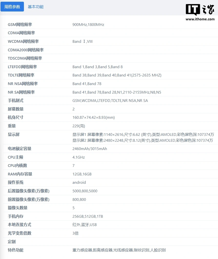6.62″2616*1140p 外屏 + 8.12″2480*2248p 主屏