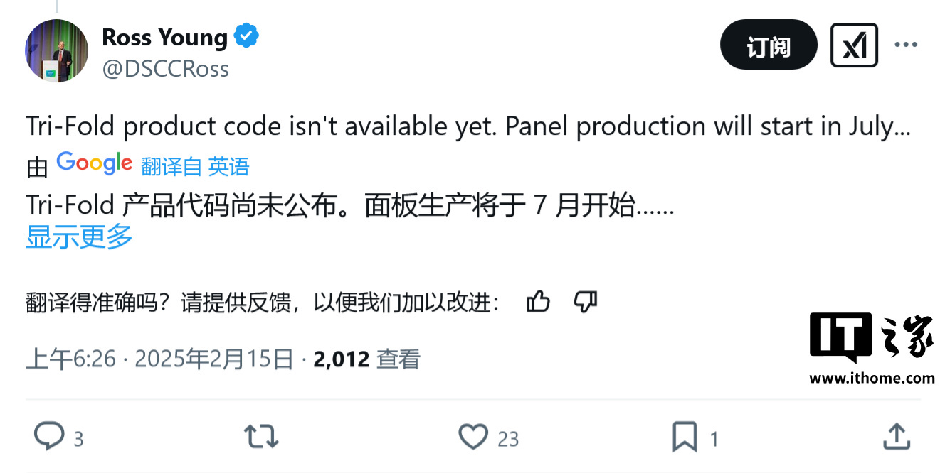 至于 Galaxy G Fold,PandaFlashPro 表示三星可能会在 8 月底开始生产。此外,顶级显示分析师 Ross Young 证实,G Fold 的代号尚未确定,面板生产将于 7 月开始。