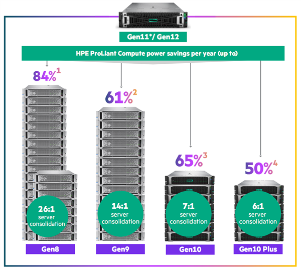 得益于英特尔至强6处理器的进化,慧与新服务器的性能、能效都得到了大幅提升,对比传统服务器每瓦性能提高了多达41%,每年可以节省多达65%的电力消耗。