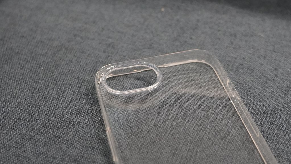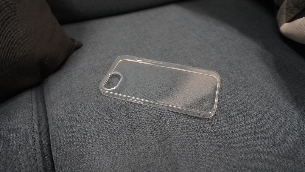 手机壳背面为单摄像头预留了水平切口,旁边是闪光灯。这表明 iPhone SE 4 延续了 2022 年 iPhone SE 的单摄像头设计,而非 iPhone 14 的对角双摄。