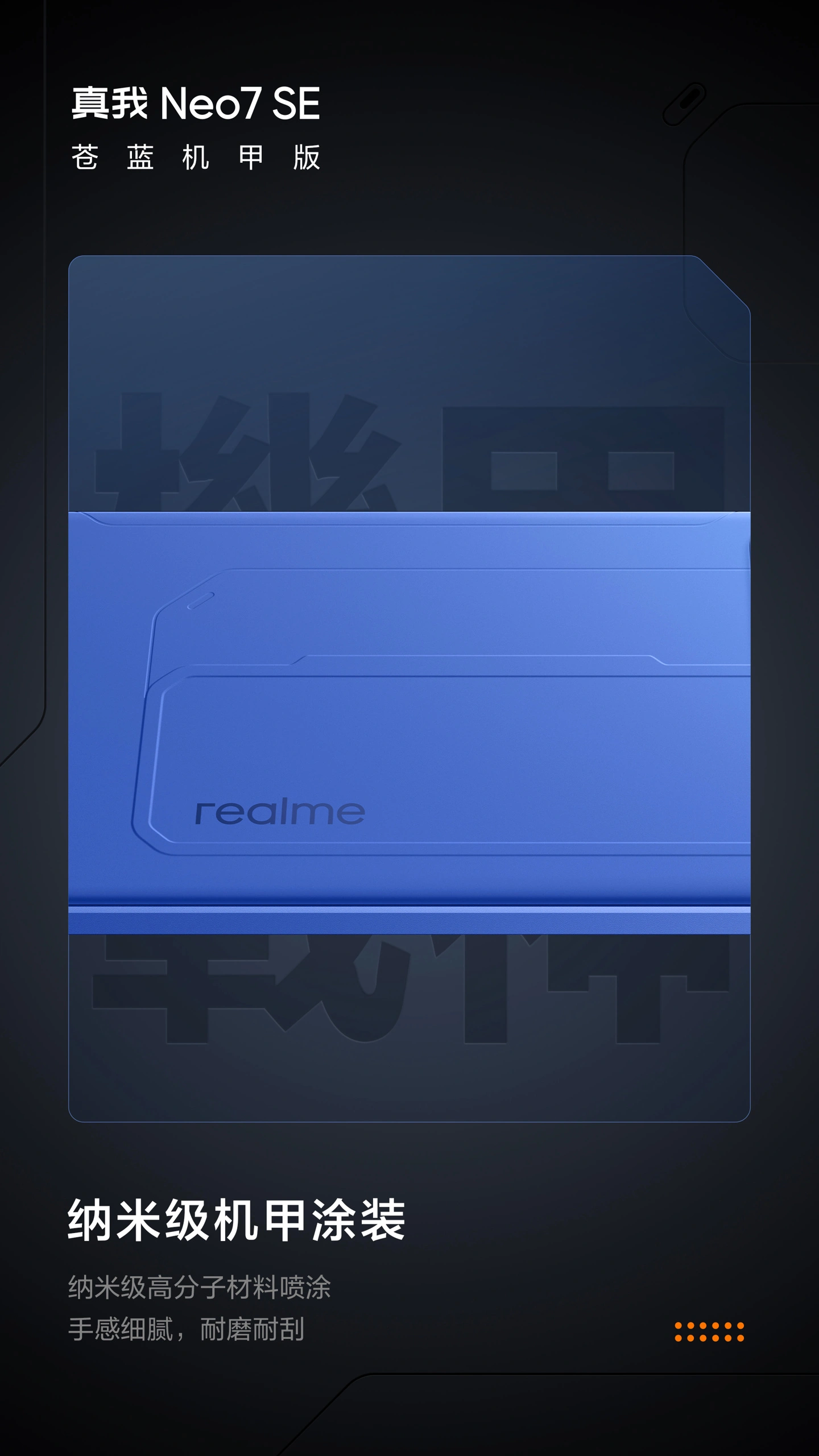 文章来源于互联网:IT之家-realme 真我 Neo7 SE 手机外观公布:三配色、机甲元素设计