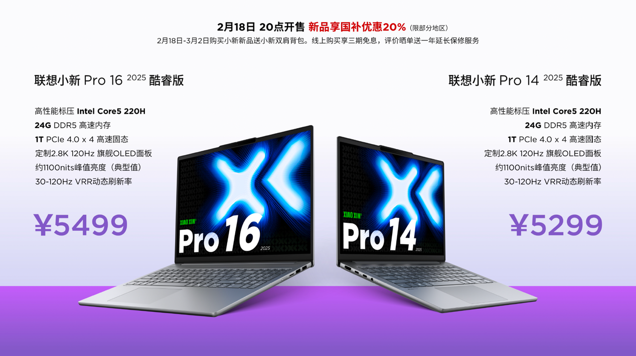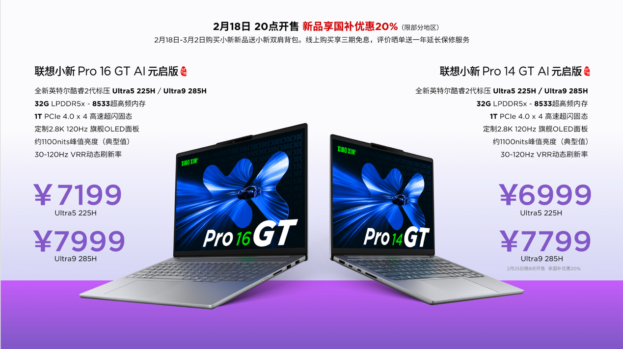 新品价格方面,联想小新Pro 16 2025款首发价5499元,联想小新Pro 14 2025款首发价5299元;联想小新Pro 16 GT AI元启版首发价7199元起,联想小新Pro 14 GT AI元启版首发价6999元起。部分地区享国补优惠20%。2月18日联想官网、各大电商直营渠道及联想智生活店面开售。