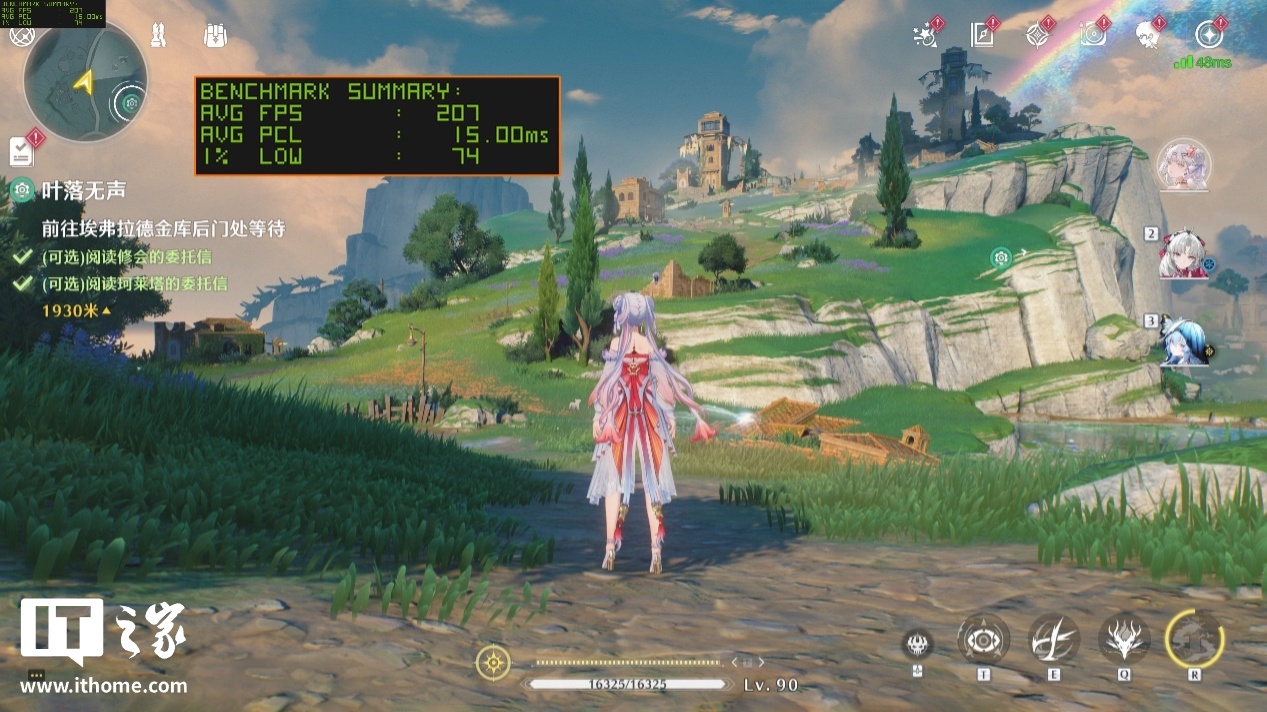 在 4K 分辨率 + 最高画质 + DLSS 3 质量档下,游戏平均帧数为 207 帧,1% Low 帧 74 帧;
