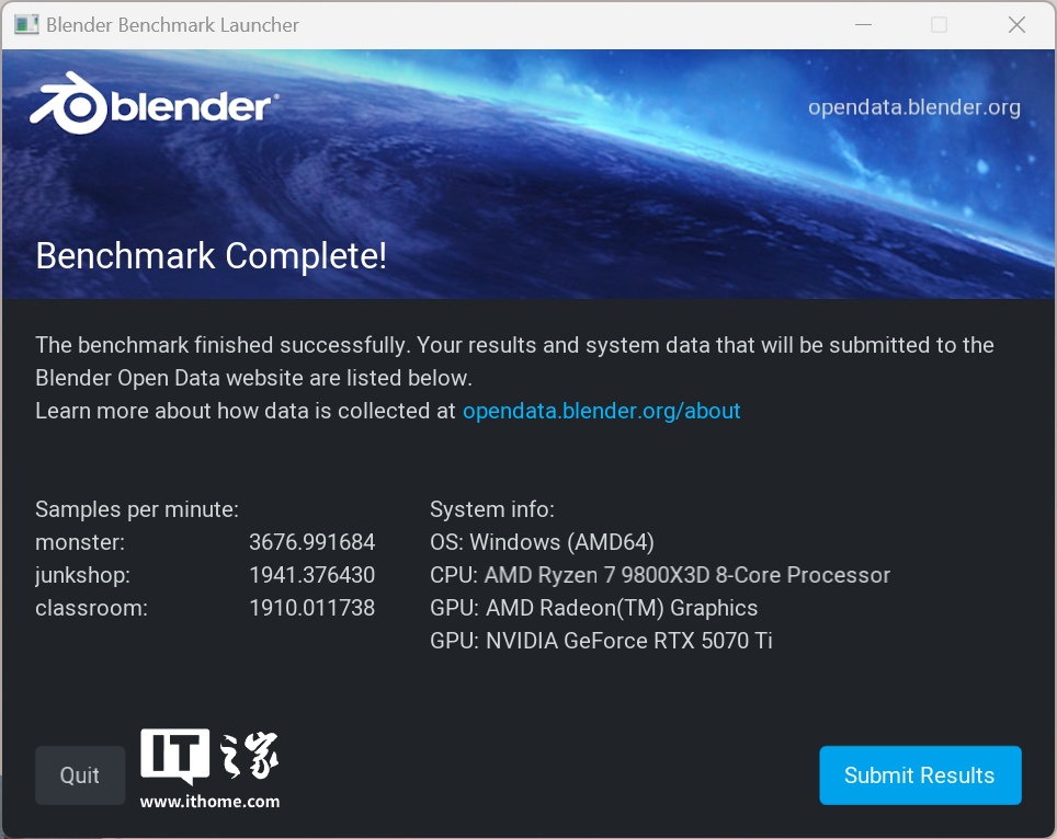 在 Blender 基准测试的 3 场景渲染中,七彩虹 iGame GeForce RTX 5070 Ti Advanced OC 16GB 显卡的渲染性能相较 RTX 4070 Ti SUPER 提升分别约为 4.9%、11.7%、6%。